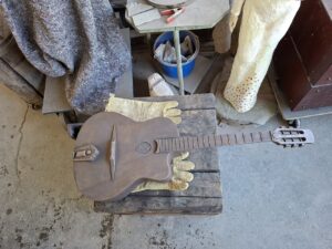 Gitarrenworkshop zu ehren Django Reinhardt verbunden mit der Präsentation der Bronzegitarre (ohne Betonsockel und Beschriftung) die für die Einweihung des Django-Reinhardt-Platz angefertig wurde.